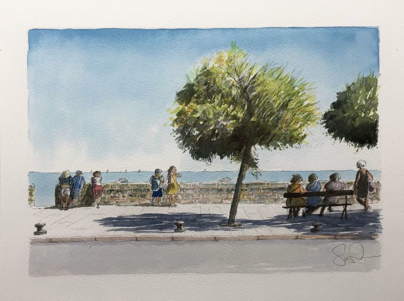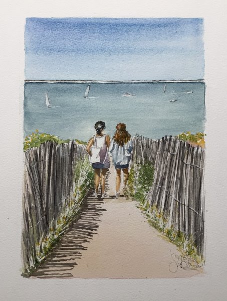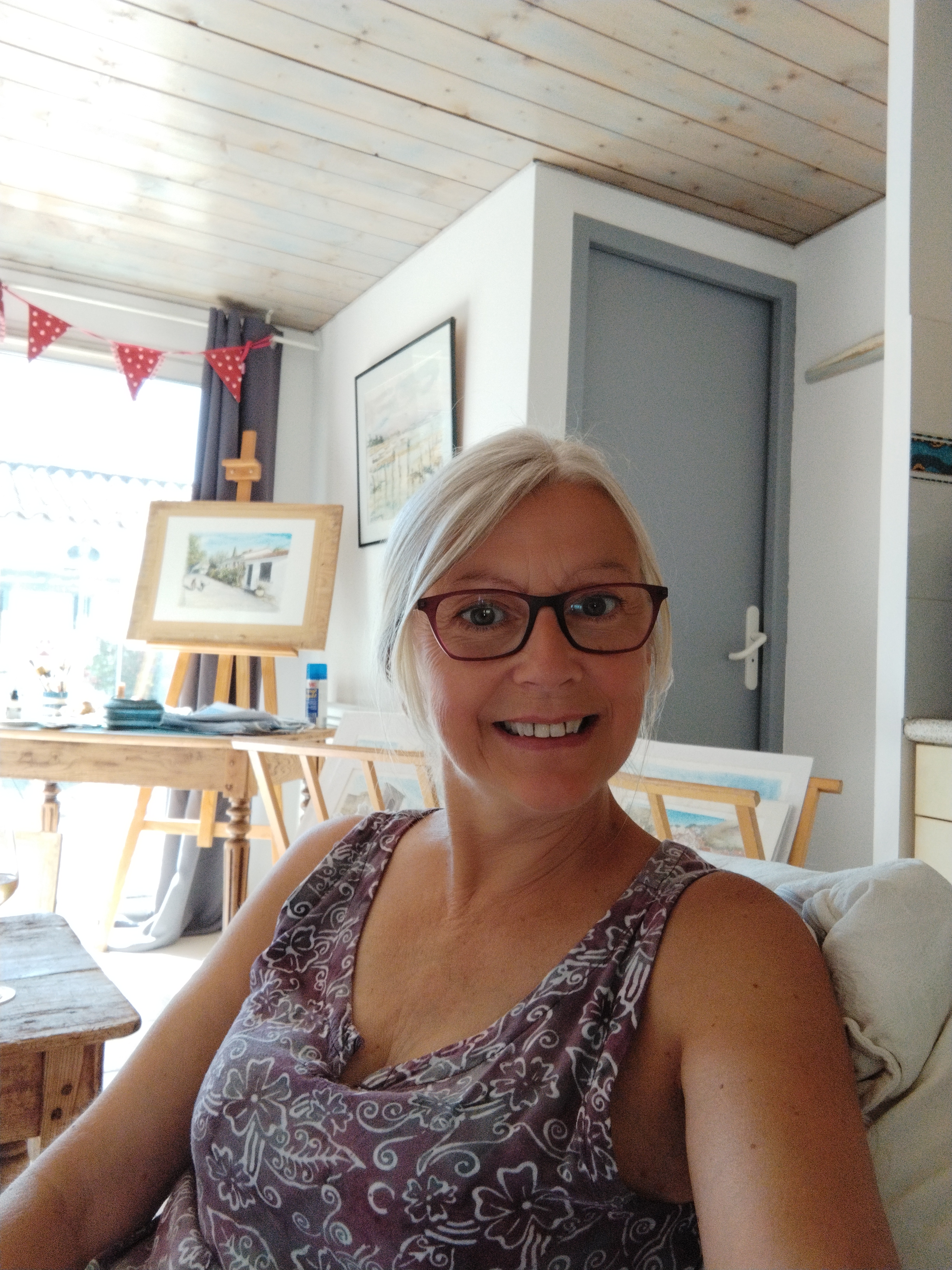 Séduite par la lumière et la beauté de l’île de Ré, Sue s’est remise à peindre après de longues années consacrées à l’enseignement et à la formation dans le cadre d’Erasmus+. Utilisant l’aquarelle d’une manière très personnelle, elle peint les paysages rétais et la lumière si particulière de l’île d’une façon délicate et intimiste. Ses prix sont très raisonnables et il est possible d’acheter un tableau qui embellira votre maison sans se ruiner …