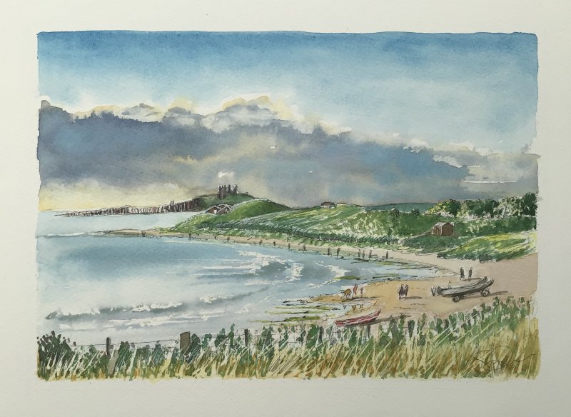 Seduced by the light and beauty of Northumberland, Sue returned to the UK from Ré Island in France where she continues to develop her creative skills using pen and watercolour. She draws and paints local landscapes in this stunning county in a most delicate and intimate way. Her prices are very reasonable and it’s possible to buy a painting that will embellish your home without breaking the bank! Come and see me at Chapel Lands Gallery, Alnwick!
